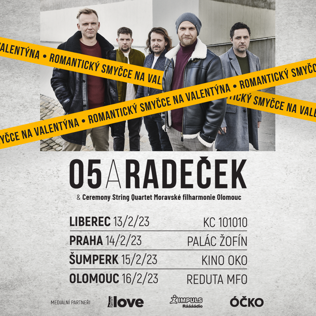 Kvůli velkému zájmu o vstupenky přesouvá kapela O5 a Radeček koncerty chystaného valentýnského turné do větších sálů. V Šumperku však ani stěhování z divadla do prostornějšího kina nepomohlo a koncert je měsíc a půl dopředu vyprodaný. Radečci se proto rozhodli přidat další vystoupení. Turné s názvem Romantický smyčce na Valentýna je věnované všem zamilovaným, ale i těm, kteří lásku hledají. Kapela z podhůří Jeseníků jej zahájí 13. února v Liberci, následovat bude pražský Palác Žofín, Šumperk a tečku napíše 16. února vystoupení v koncertní síni Moravské filharmonie Olomouc. Předprodej vstupenek stále běží v síti Tickelive.cz.