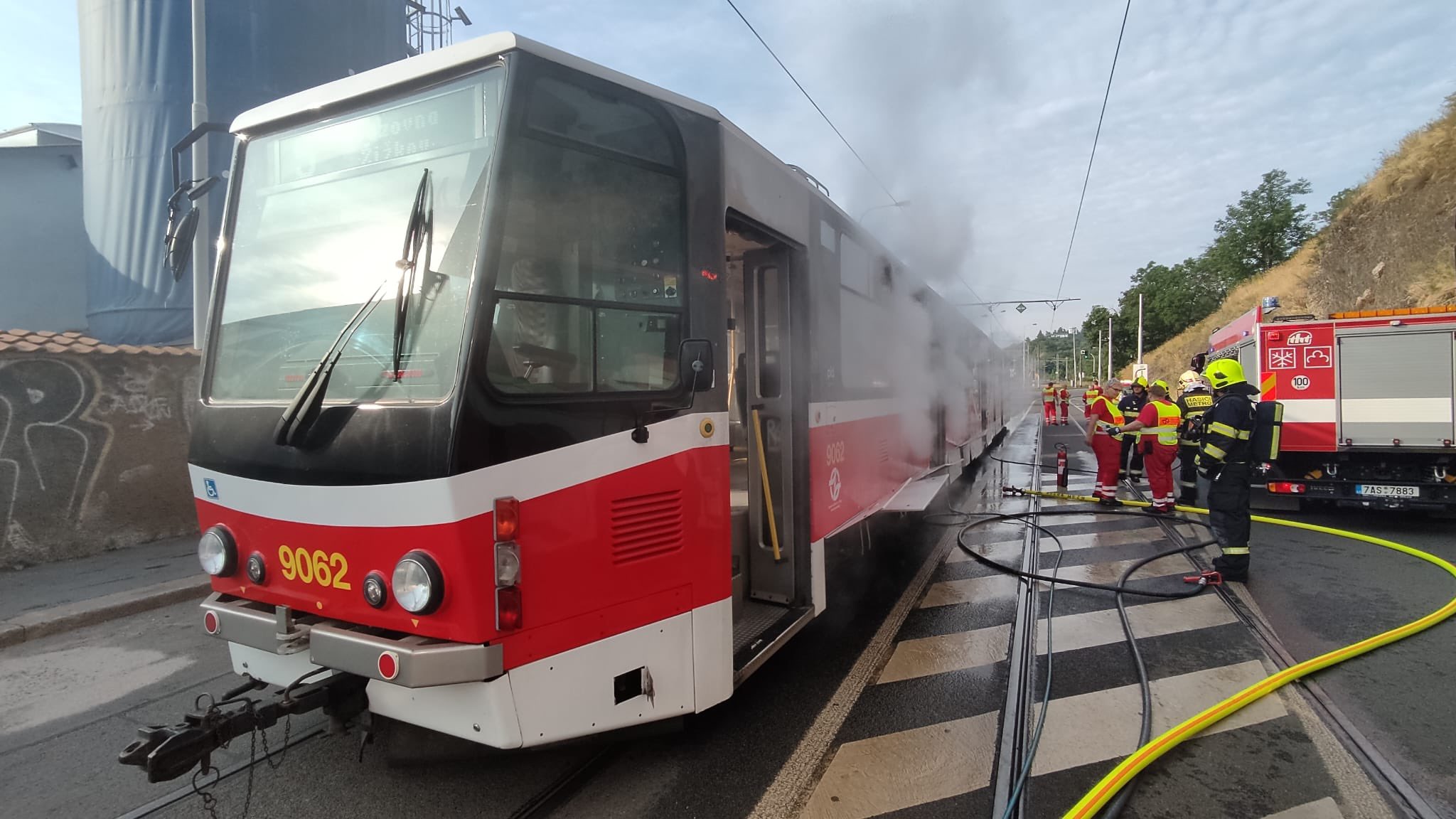 V ulici Nad Zlíchovem zasahovali hasiči, společně s DPP, u požáru v podvozku tramvaje.