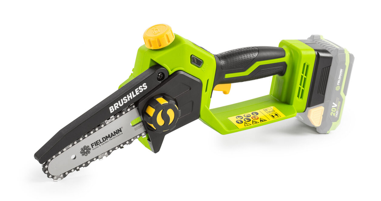 Akumulátorová mini řetězová pila Fieldmann FZP 70105-0 je šikovným pomocníkem při řezání na zahradě i v dílně. Ovládá se snadno jednou rukou a výborně v ní také sedí. Váží jen 1,2 kg, což ocení hlavně ženy a starší lidé.