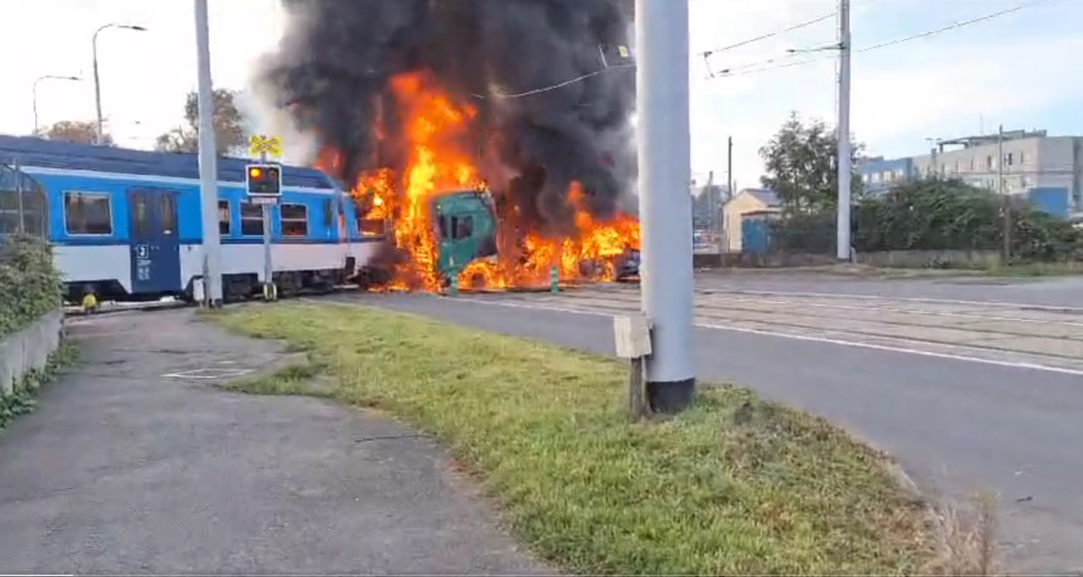 Aktuálně zasahuje Policie u srážky vlaku a nákladního vozu, ke které došlo na železničním přejezdu na Divisově ulici v Olomouci.