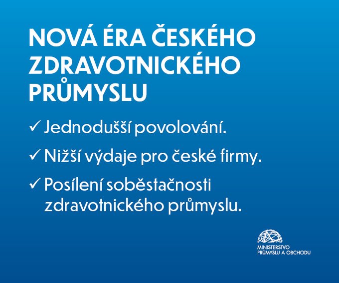 Český metrologický institut (ČMI) se stal oznámeným subjektem pro certifikaci zdravotnických prostředků podle nařízení EU (MDR) s širokým rozsahem 20 základních MDR kódů a 18 horizontálních MDR kódů. Spolu s oznámeným subjektem ITC Zlín vznikla dostatečná kapacita pro české výrobce zdravotnických prostředků, kteří díky tomu mohou žádat o certifikát pro své produkty přímo u českých subjektů a nebudou se muset spoléhat na zahraniční. Zvýší se tím soběstačnost a konkurenceschopnost zdravotnického průmyslu České republiky.