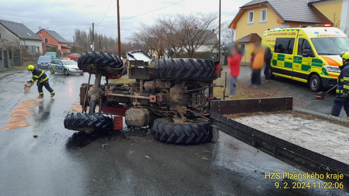 V Chodském Újezdu zasahovali hasiči u dopravní nehody traktoru. Vozidlo se převrátilo na bok a došlo k úniku provozních kapalin, který zlikvidovali sorbentem. Jedna zraněná osoba skončila v péči ZZS.