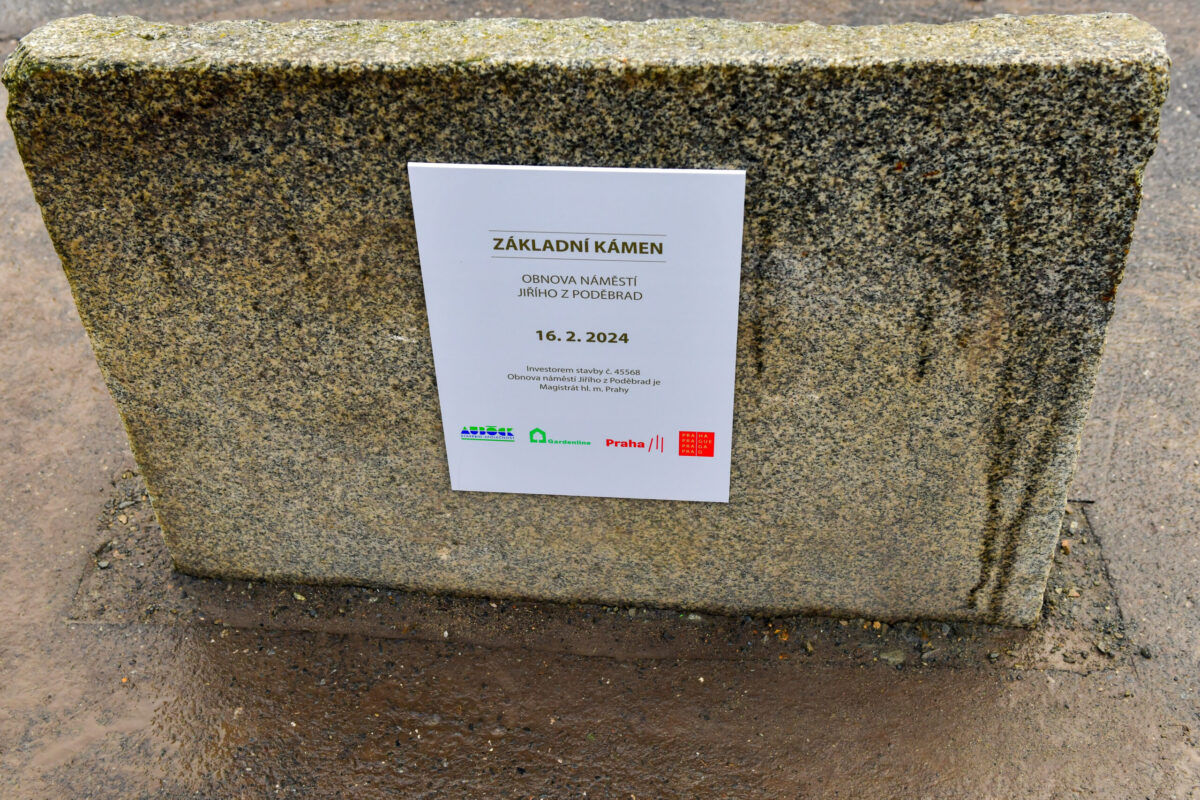 V rámci začínající kompletní obnovy náměstí Jiřího z Poděbrad poklepali dnes zástupci hlavního města a radnice Prahy 3 na základní kámen, který byl na místo přivezen z areálu Pražského hradu. Jedná se o originální dlažební kámen ze III. nádvoří, které navrhoval významný architekt Josip Plečnik, autor zároveň i kostela Nejsvětějšího Srdce Páně na náměstí Jiřího z Poděbrad. Symbolicky se tak znovu obě místa propojují.