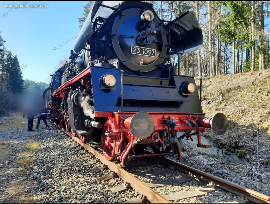 Dnes ve 13:08 vyjela směna C s CAS 20 Scania k trati 147 zastávka Plesná – žst. Bad Brambach, kde v hektometru 52,400 došlo k najetí německého historického vlaku R 95951 do stromu.