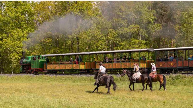 Kovbojský prázdninový víkend se uskuteční 17. a 18. 8. 2024 Vlaky tažené parní lokomotivou budou přepadávat kovbojové na koních (do 14:45). V Býchorech bude připraven dětský park se skákacím hradem. Přepadávání vlaků kovboji na koních a kovbojské představení do předposlední jízdy. (v sobotu i v neděli)