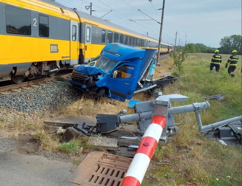 Hasiči zasahovali v Radhošti na Orlickoústecku, kde došlo na železničním přejezdu ke střetu dodávky a projíždějícího vlaku. Provoz na trati byl zastaven.