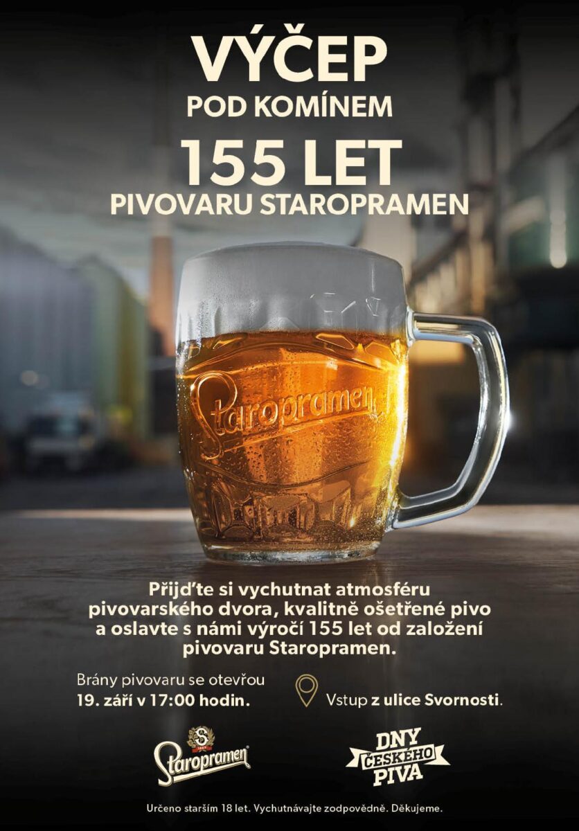 Pivovar Staropramen slaví výročí 155 let od svého založení. Oslavy se odehrají prostřednictvím oblíbeného Výčepu pod komínem, který se uskuteční ve čtvrtek 19. září od 17 hodin a nabídne nejen výborné pivo, ale také jedinečnou příležitost připít si na významné jubileum. Návštěvníci se mohou těšit na tankovou Staropramen 10 a letošní novinky Extra Chmel, Staropramen Nealko, […]