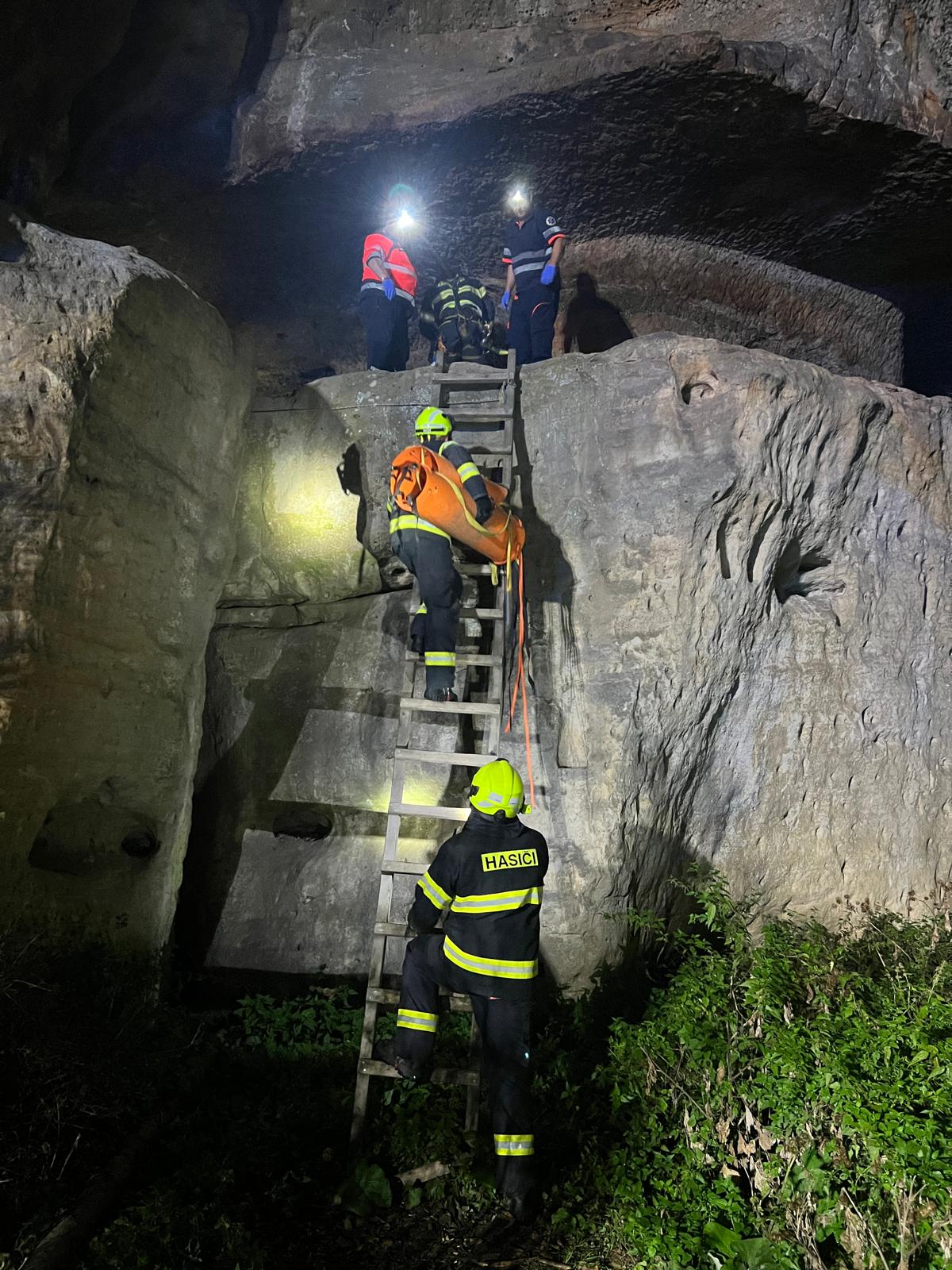 Do části obce Truskavna vyjeli v sobotu pozdě večer profesionální hasiči z Mělníka včetně lezecké skupiny na záchranu osoby po pádu, která se měla nacházet na skále.