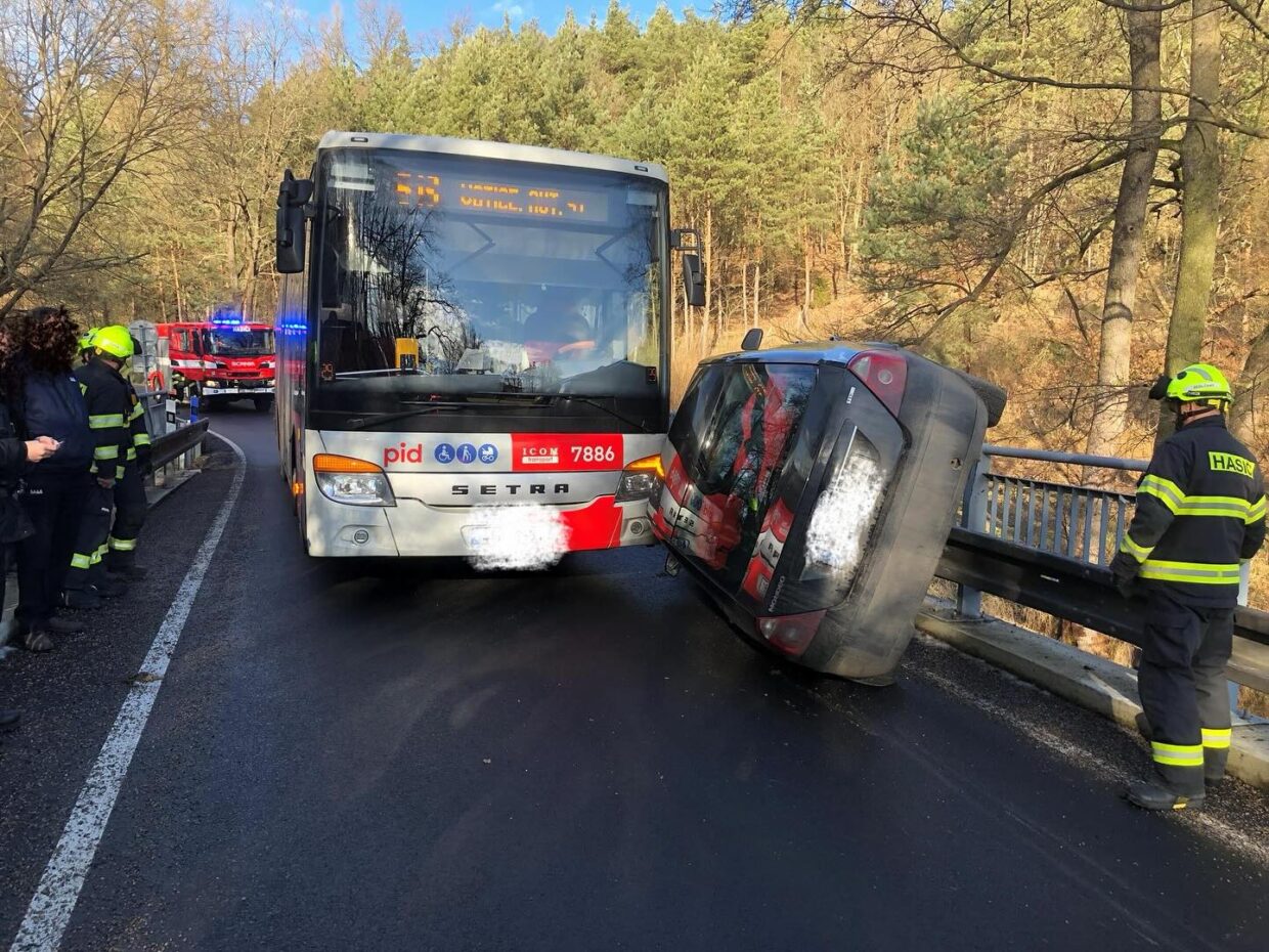 Hasiči zasahovali u dopravní nehody osobního automobilu s autobusem. Křenovice (okr. Benešov)