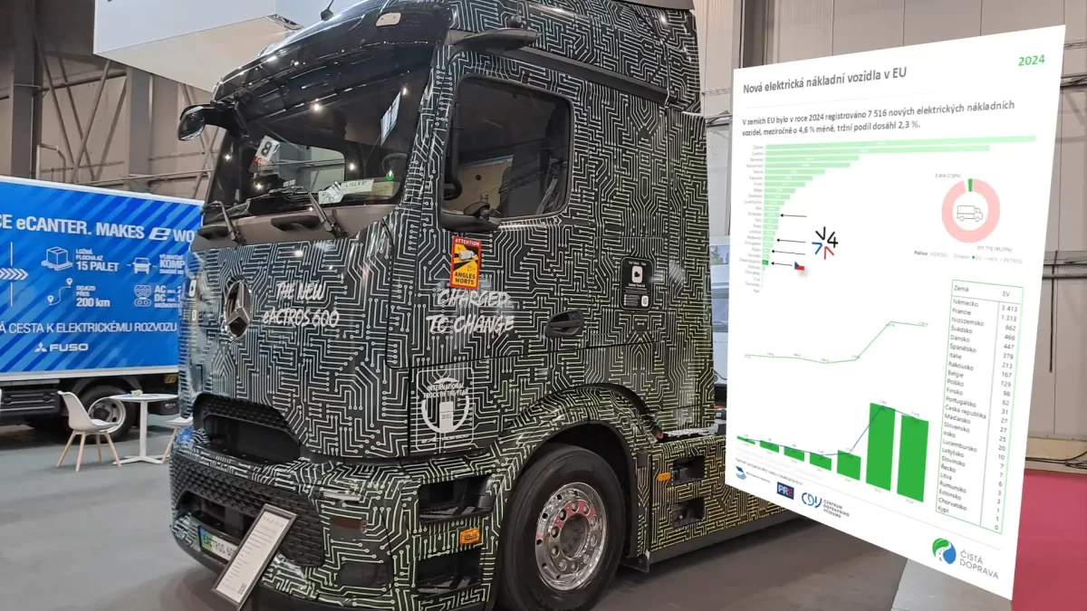 V loňském roce bylo v zemích Evropské unie registrováno 7 516 nových nákladních elektromobilů s externím dobíjením s nejvyšší přípustnou hmotností nad 3,5 tuny. To představuje meziroční pokles o 4,6 %. I přes pokles v absolutních číslech se podíl nákladních elektromobilů na celkovém počtu registrací mírně zvýšil na 2,3 %. V Česku bylo registrováno 27 nových nákladních elektromobilů, meziročně o 17 více. Český trh s novými nákladními vozidly byl v roce 2024 osmý největší mezi zeměmi EU, s těmi elektrickými pak 13., vyplývá z aktualizovaných informací webu cistadoprava.cz, které vycházejí ze zdrojových dat Evropského sdružení výrobců automobilů. Díky podpoře z výzvy Ministerstva dopravy v rámci Programu Doprava 2021–2027 by mělo v Česku vzniknout na pět desítek dobíjecích stanic pro nákladní elektromobily.