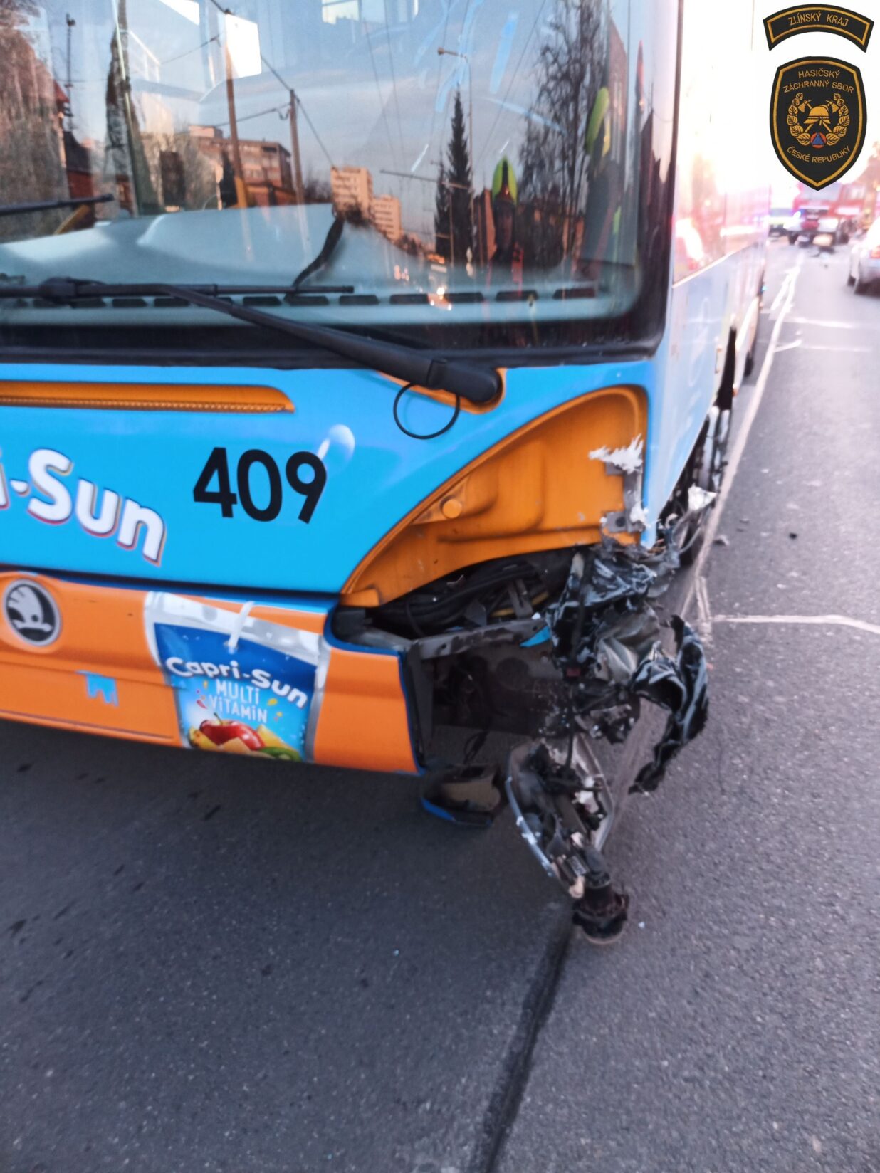 Pár minut před sedmou hodinou ranní 20.2.2025 byli vysláni profesionální hasiči ze stanice Zlín do ulice Zálešná IV. v krajském městě, kde došlo ke střetu trolejbusu a osobního auta.