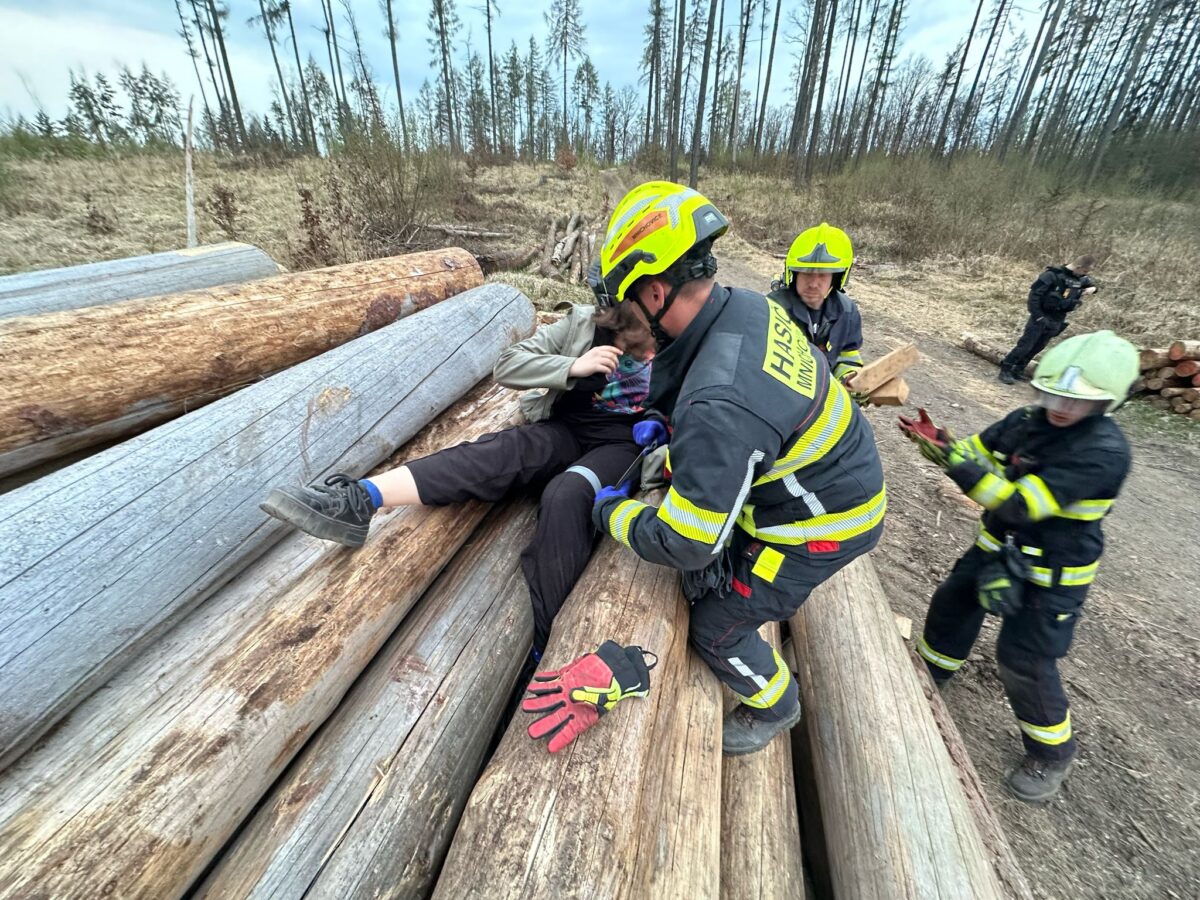 Ne zcela běžný zásah za sebou mají profesionální hasiči z Říčan a dobrovolní z Mnichovic, když byli v neděli večer vysláni k záchraně mladé slečny, které se zaklínila noha mezi dvě klády na navezené hromadě na okraji lesa u chatové oblasti.