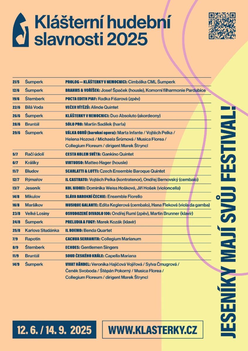 Letošní Klášterní hudební slavnosti zahájí vzácný host. První dáma České republiky, paní Eva Pavlová, přijede 12. června do Šumperka a také 25. srpna do Karlovy Studínky, aby osobně podpořila 19. ročník tohoto oblíbeného hudebního festivalu. Svou účastí naváže na loňskou návštěvu, která byla pro celý festival velkým povzbuzením i poctou.