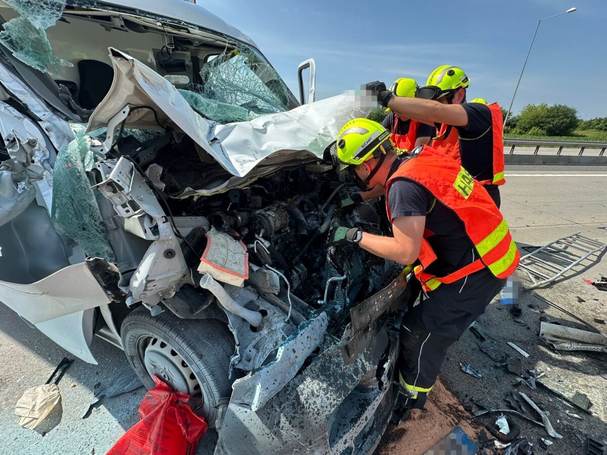 K dopravní nehodě dodávky a cisterny vyjeli dnes dopoledne profesionální hasiči z Říčan spolu s HZS Praha na Pražský okruh.