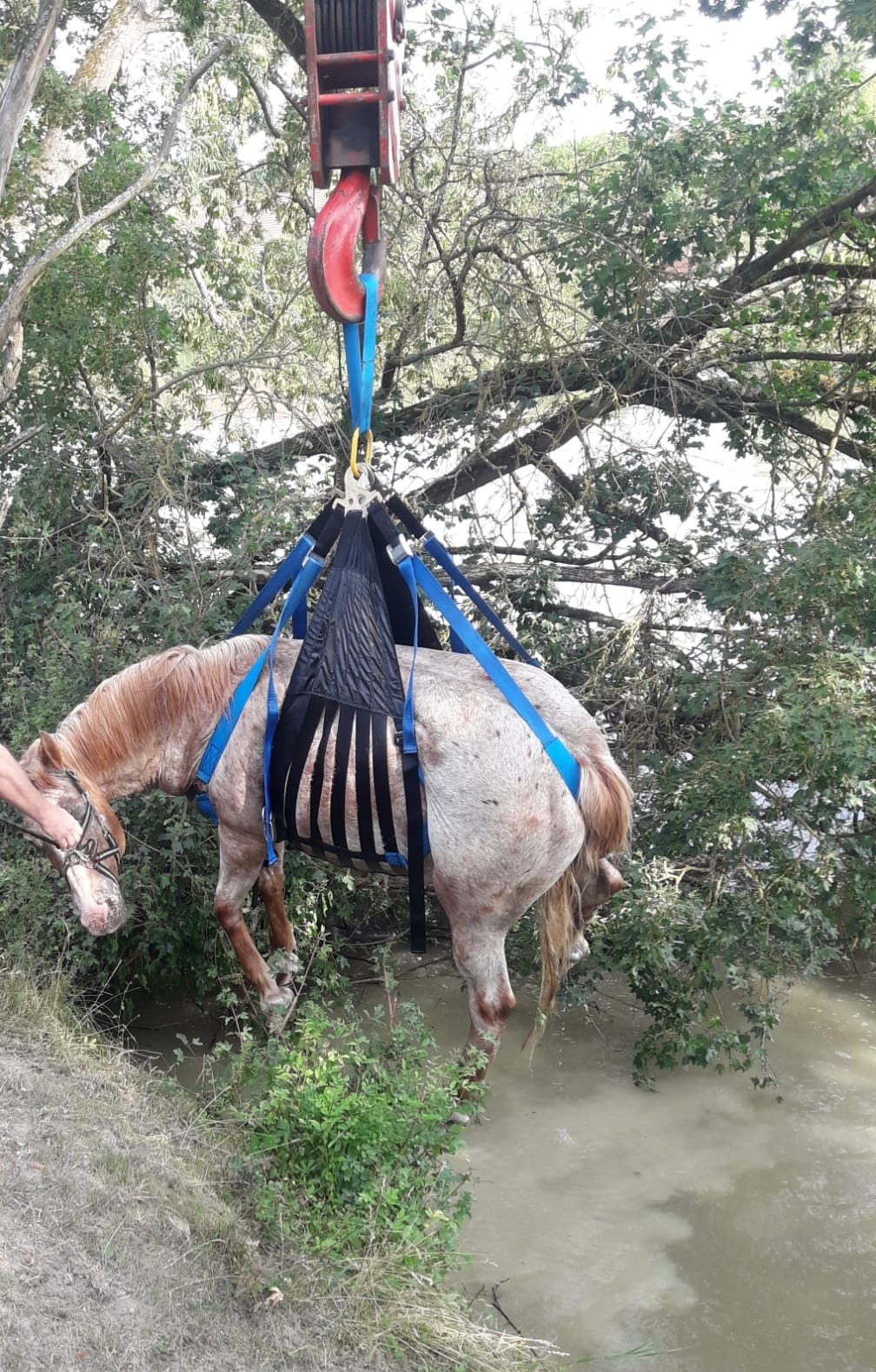 Zachránit koně, který spadl do vody a nedokázal sám vylézt, vyjely profesionální jednotky Poděbrady a Nymburk ve spolupráci s dobrovolnými kolegy z Městce Králové.