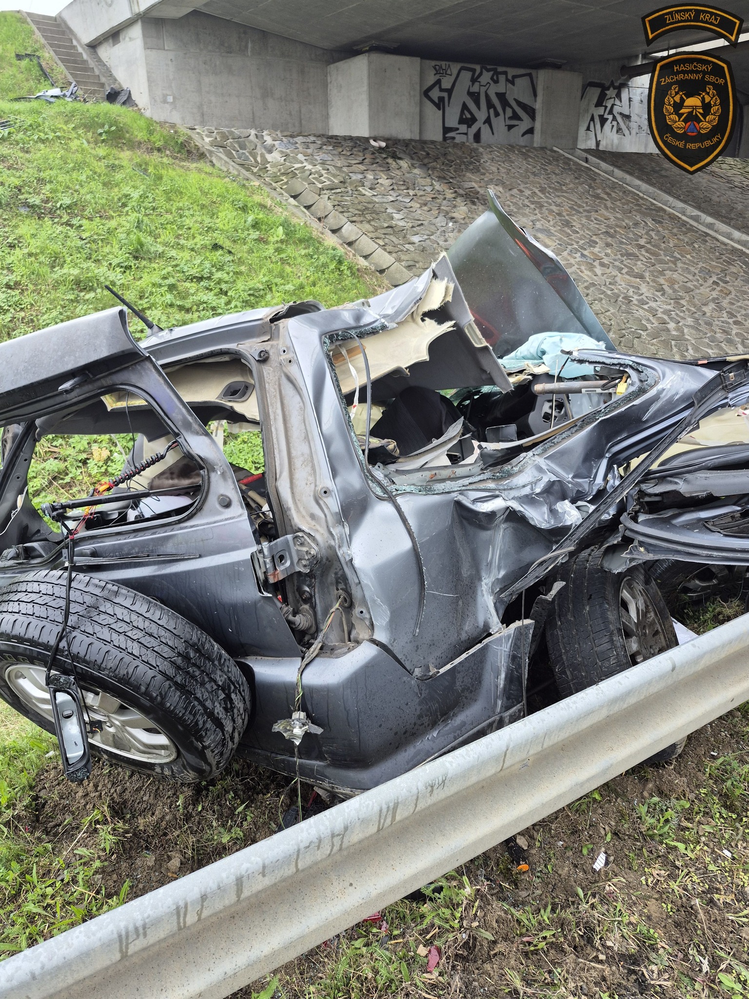 Krátce před druhou hodinou odpolední včera byli hasiči vysláni k vážné dopravní nehodě na dálnici D1 poblíž Bezměrova. Došlo zde ke střetu osobního a nákladního automobilu, přičemž osobní vůz po nárazu spadl z dálničního mostu.