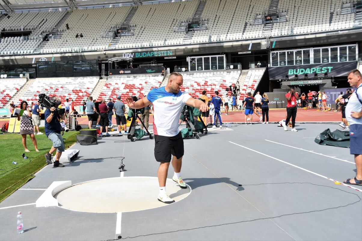 Včera se čeští atleti, hlavně ti co budou v sobotu na startu, rozcvičovali, čtvrtkaři zkoušeli tvrdost dráhy lehkým klusem, Tomáš Staněk s koučem Petrem Stehlíkem obešel a pochvaloval si kruh, který neklouže. A pak taky litoval, že pro něj mistrovství světa začíná i končí hned první den.