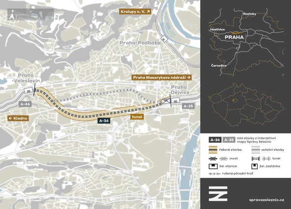 Klíčová část projektu Praha – Letiště – Kladno se může posunout do další fáze příprav. Ministerstvo životního prostředí posoudilo vliv chystané stavby z pražských Dejvic do Veleslavína na přírodu i zdraví obyvatel a vydalo souhlasné stanovisko. Trať povede ve zcela nové stopě, tunelem pod Střešovicemi.