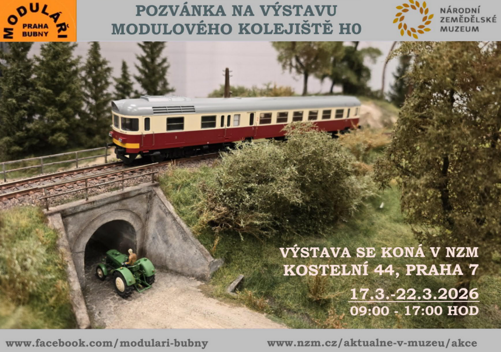 Přijďte si prohlédnout modulové kolejiště ve velikosti H0. Národní zemědělské muzeum opět hostí výstavu Klubu železničních modelářů z Prahy 7 – Bubnů. Tentokrát bude dlouhá 68 metrů a představí nový modul s přejezdem AŽD.