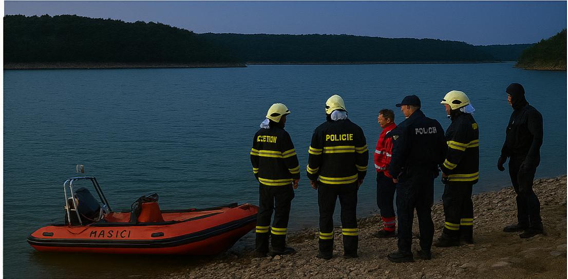 U vodní nádrže Dalešice zasahovali všechny složky Integrovaného záchranného systému v rámci rozsáhlé pátrací akce. Bohužel se potvrdily původní domněnky a tělo našeho kolegy jsme nalezli v hloubce cca 20 m bez známek života.