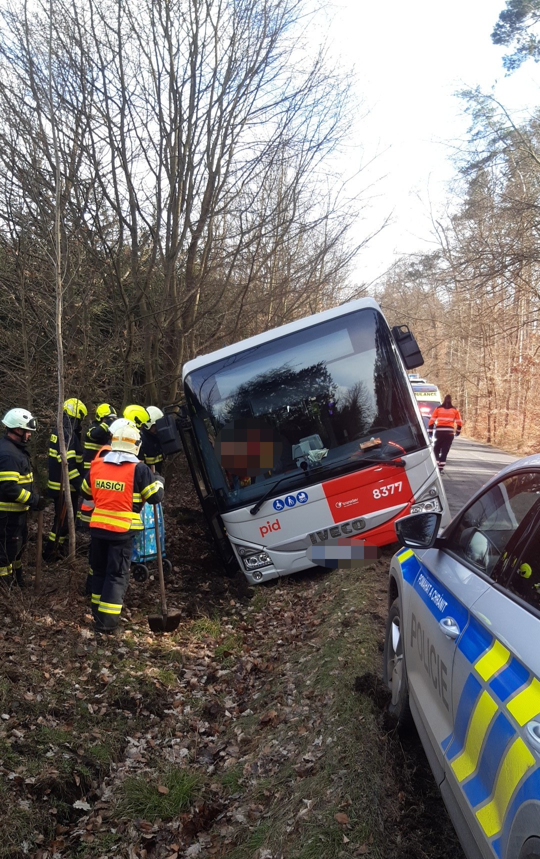 V úterý se u obce Velká Buková (Rakovník) utrhla krajnice . Profesionální hasiči z Rakovníka a dobrovolní z Roztok stabilizovali autobus.