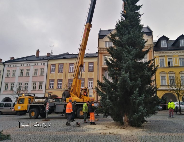 Také v letošním roce pomohla akciová společnost ČD Cargo při instalaci vánočního stromu na Krakonošově náměstí v Trutnově.