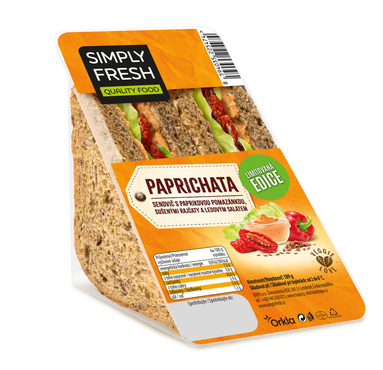 Stále více Čechů výrazně omezuje konzumaci masa – ať už z etických, ekologických nebo zdravotních důvodů. Roste počet veganů, vegetariánů nebo takzvaných flexitariánů – tedy lidí, kteří si maso dají pouze příležitostně. Pro všechny, kteří chtějí odlehčit svůj jídelníček, připravila společnost Simply Fresh v jarní limitované edici novinku: vegetariánský sendvič Paprichata, jejíž hlavní ingrediencí je lahodná papriková pomazánka Simply Fresh. Sendvič najdete na většině čerpacích stanic, ve vybraných automatech, v síti prodejen Žabka nebo Pont. Doporučená prodejní cena je 75 Kč.