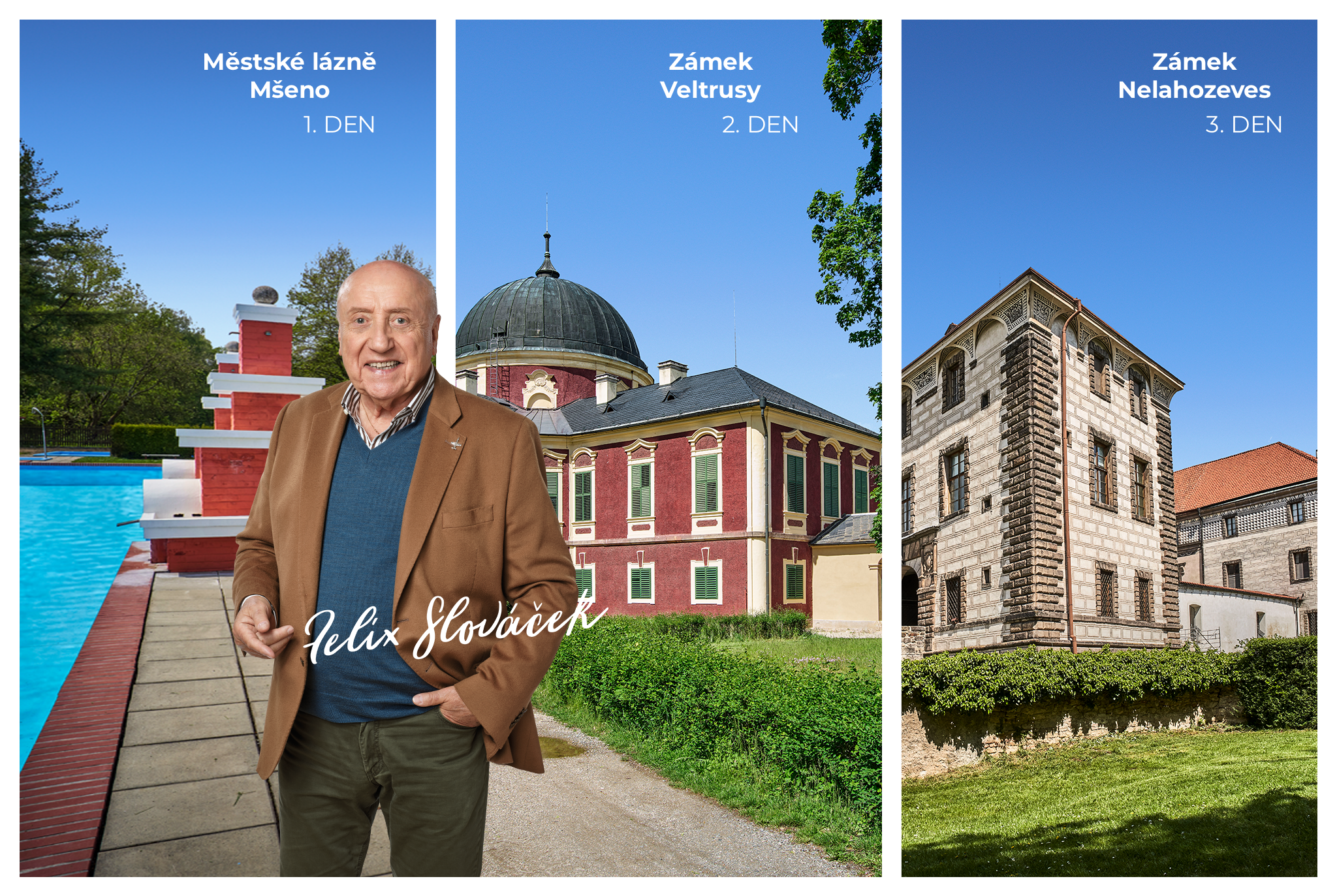 Pojďme se podívat na oblíbená místa ve Středočeském kraji, která doporučuje navštívit český klarinetista, saxofonista, hudební skladatel a dirigent Felix Slováček. Je mezi nimi zámek Nelahozeves a Veltrusy nebo plovárna ve Mšeně, kde si můžete připomenout český hudební retrofilm Rebelové.